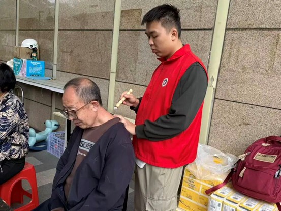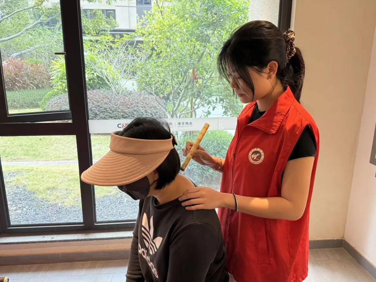 在党支部统筹指导、团委精心组织、班级全力配合下,队员们前期开展了扎实的理论学习与技能培训,将中医艾灸理论、健康养生知识与实操技巧融会贯通,以专业素养和饱满热情投身志愿服务,实现实践与理论的深度结合。