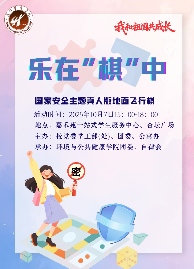 欣逢中华人民共和国七十六周年华诞,为涵养家国情怀、筑牢国家安全基石,环境与公共健康学院特别推出乐在‘棋’中——国家安全主题真人版地面飞行棋活动。