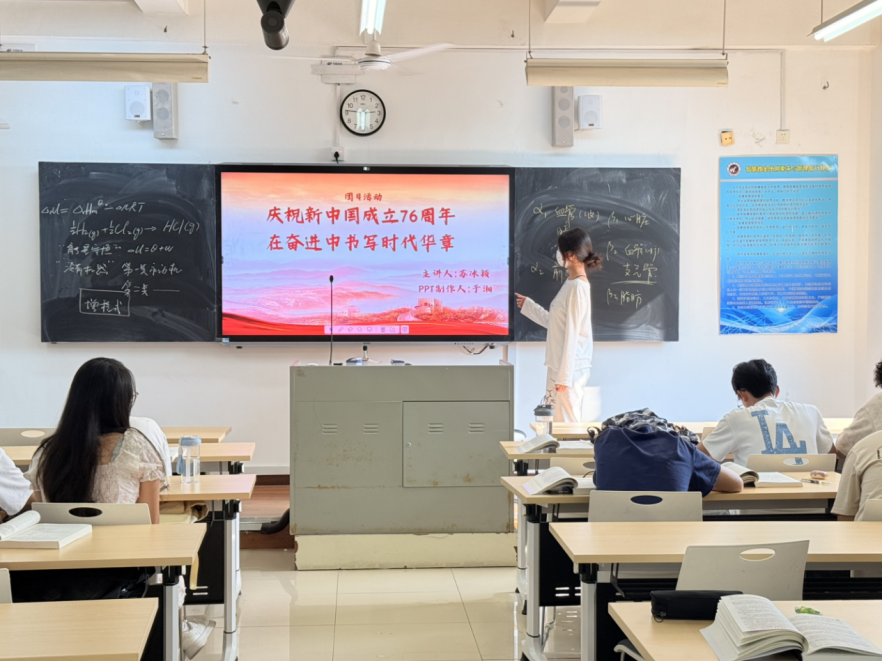 七十六载风华正茂,新时代思想指引航程。为热烈庆祝中华人民共和国成立76周年,深入学习贯彻习近平新时代中国特色社会主义思想,坚持立德树人根本任务,以理想信念教育为核心,引导广大青年坚定弘扬、自觉实践、积极传播爱国主义精神,环境与公共健康学院各团支部于2025年10月精心组织开展了“庆祝新中国成立76周年”相关主题团日活动。