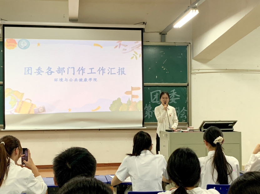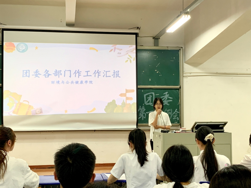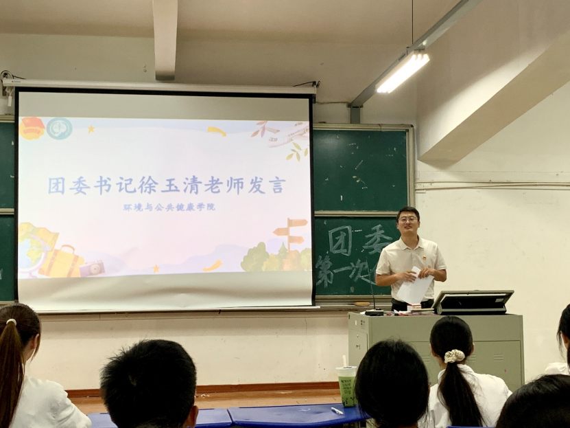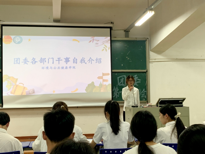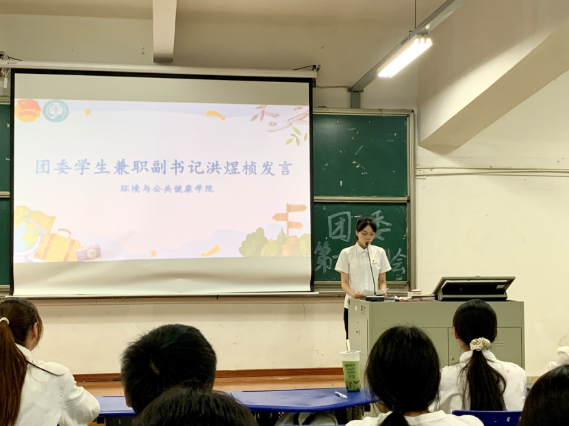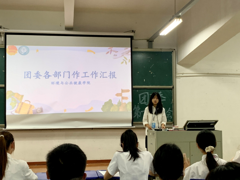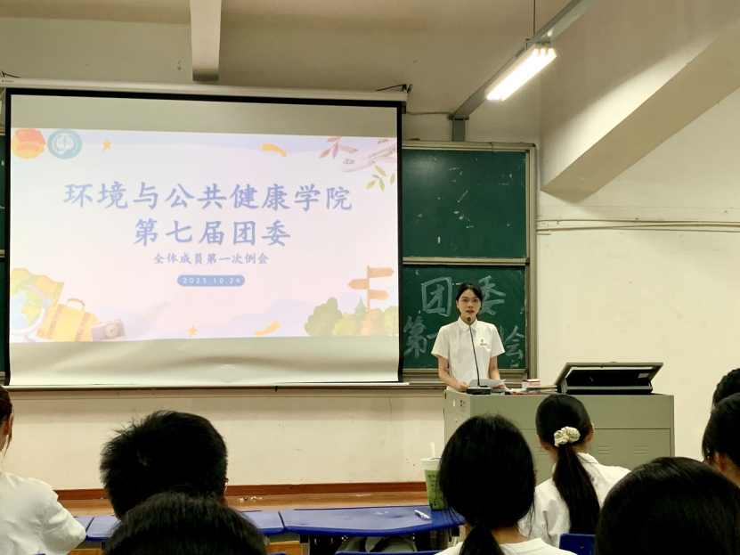秋阳明媚照人心,团结奋进正当时。为欢迎新干事的加入,帮助其快速融入集体,使新干事充分了解团委各部门的职能,明确工作方向与目标,环境与公共健康学院团委于2025年10月24日18:00在明德厅1召开2025—2026学年第一次例会。本次例会由团委学生兼职副书记洪煜桢同学主持,团委书记徐玉清老师及团委全体干部干事出席。