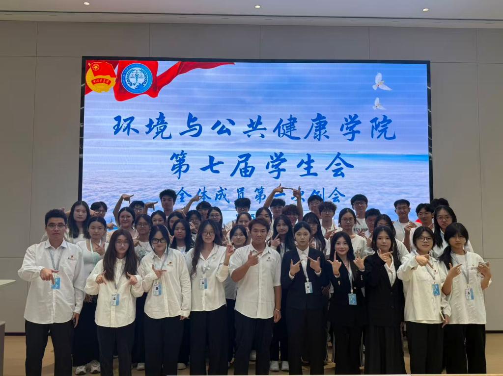 秋兰飘香,新风满堂。为欢迎新干事并帮助其快速融入学生会大家庭,环境与公共健康学院学生会于2025年10月24号18:00在至善厅2召开了本学期第一次全体例会。本次例会由学生会执行主席丁丁主持,学生会指导老师蒋依玲、学生会主席黄丽颖以及学生会全体成员参加。