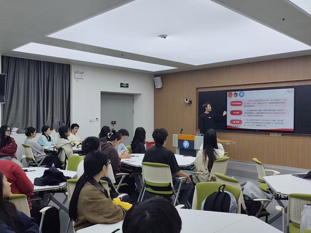 会上,丁丁同学围绕党的二十届四中全会的核心要义、精神实质和实践要求,结合学生工作实际,从“全会重大意义”“青年使命担当”“骨干履职方向”三个方面展开讲解。在交流环节中,同学们一致认为,要在今后的组织工作中勇于担当、积极作为,以“点的突破”推动“面的提升”,努力营造团结进取、奋发有为的良好氛围,共同书写无愧于时代的青春篇章。