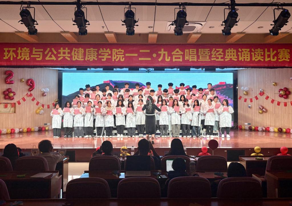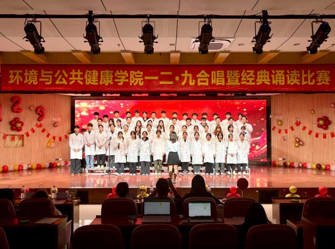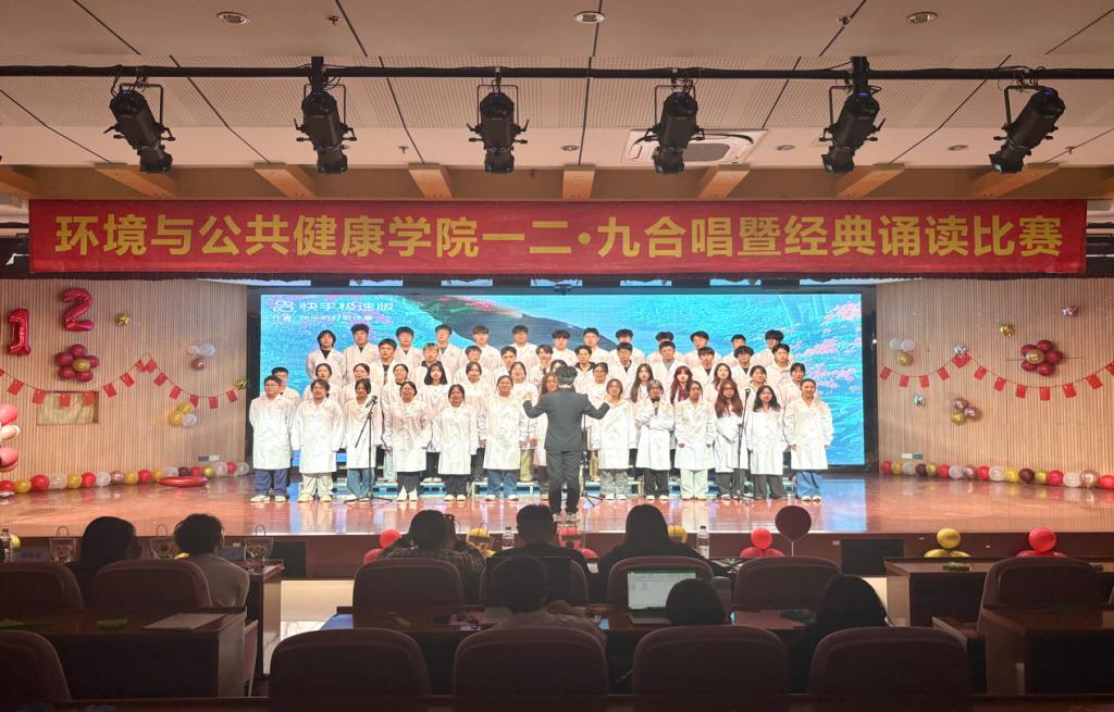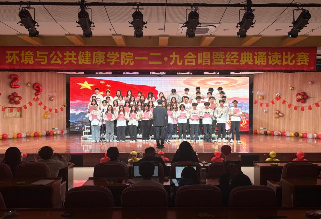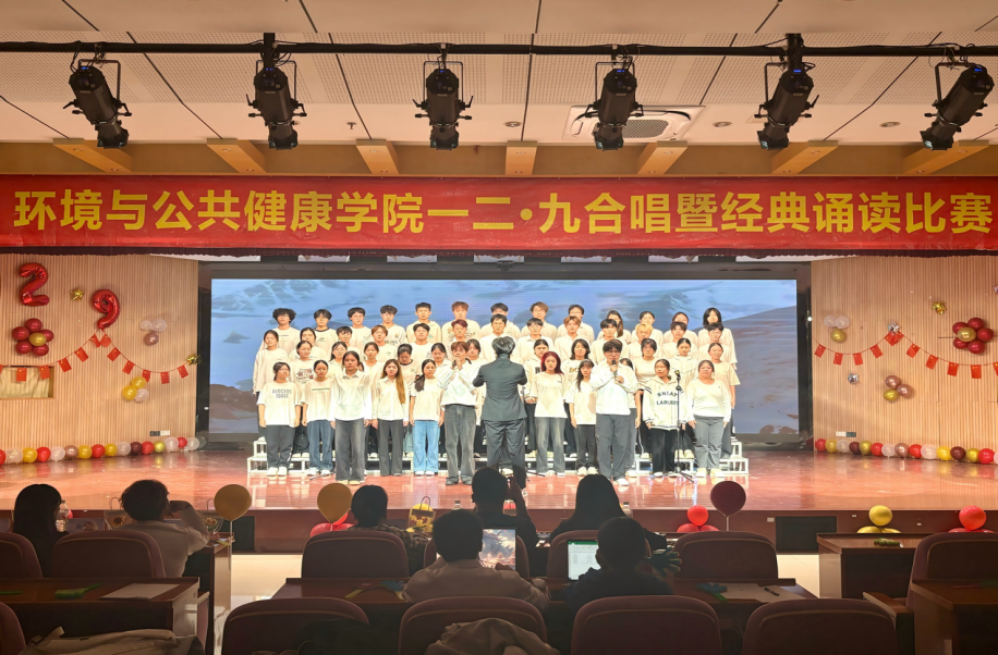 为纪念“一二·九”爱国运动90周年,环境与公共健康学院于2025年11月30日晚上18:30在俊秀报告厅举办“歌咏烽火青春志,颂承时代新华章”合唱暨经典诵读比赛。
