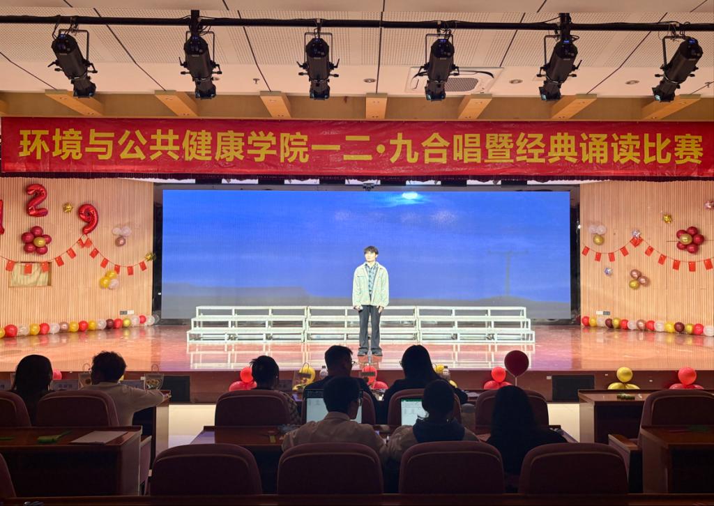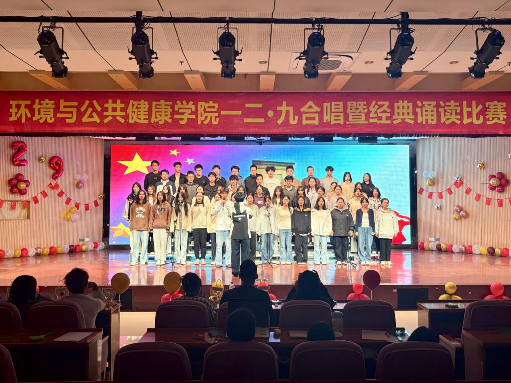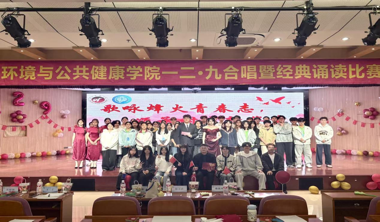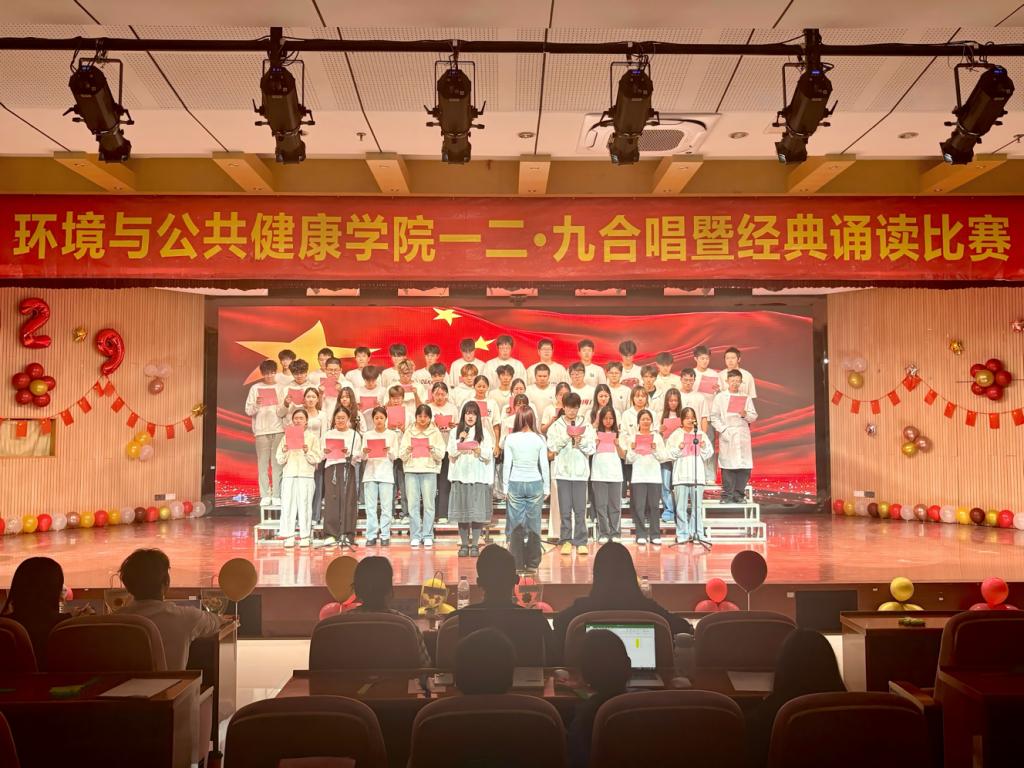 为纪念“一二·九”爱国运动90周年,环境与公共健康学院于2025年11月30日晚上18:30在俊秀报告厅举办“歌咏烽火青春志,颂承时代新华章”合唱暨经典诵读比赛。