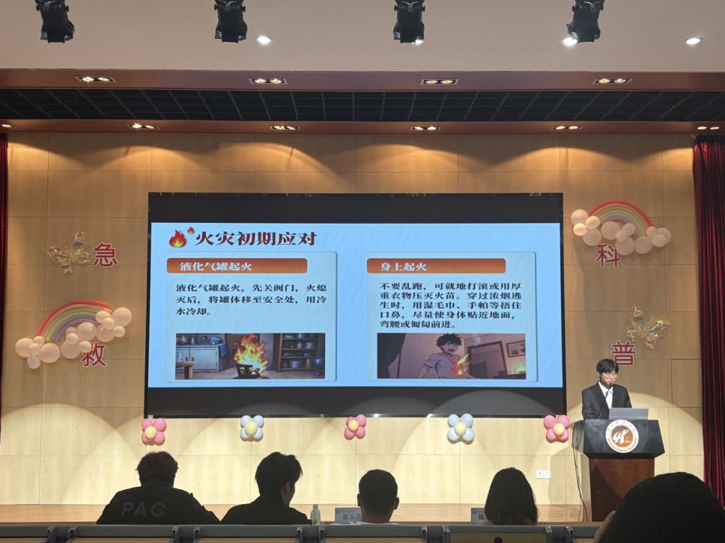 第二部分聚焦于火灾应对与逃生技能。主讲人结合火灾发展的各阶段特点,分阶段讲解了相应的处置方法与逃生要点,并强调消防安全关乎每个人,必须全员重视。普及消防知识、提升应急能力,是筑牢校园安全防线、营造平安环境的基石。