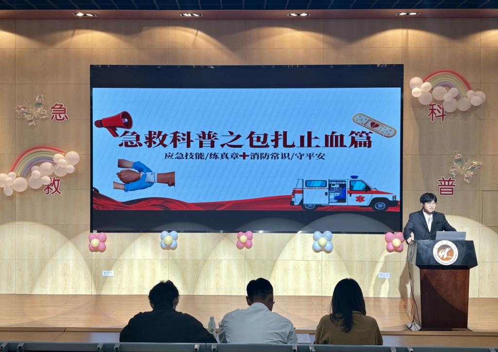 为了提高同学们急救包扎与消防安全实操能力,环境与公共健康学院自律会于2025年12月10日18:00在明德厅2举行“应急技能练真章,消防常识守平安”急救科普讲座。本次活动由环境与公共健康学院自律会生活部副部长陶文杰主持。