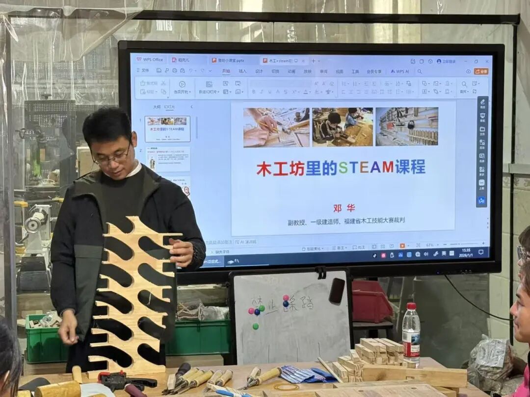 实践队的非遗探寻之旅,始于一座将传统木作与现代教育深度交融的创新空间——木探实验室。这里打破了“非遗传承=复刻古法”的固有认知,以“做木工、玩科学、练手艺”为核心理念,构建起“非遗传承+科技艺术+实践教育”的三位一体创新模式,让榫卯这一古老技艺成为连接传统与现代的文化桥梁。