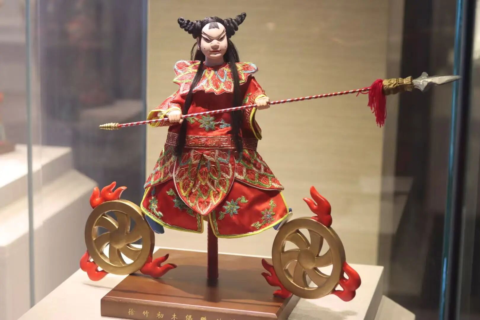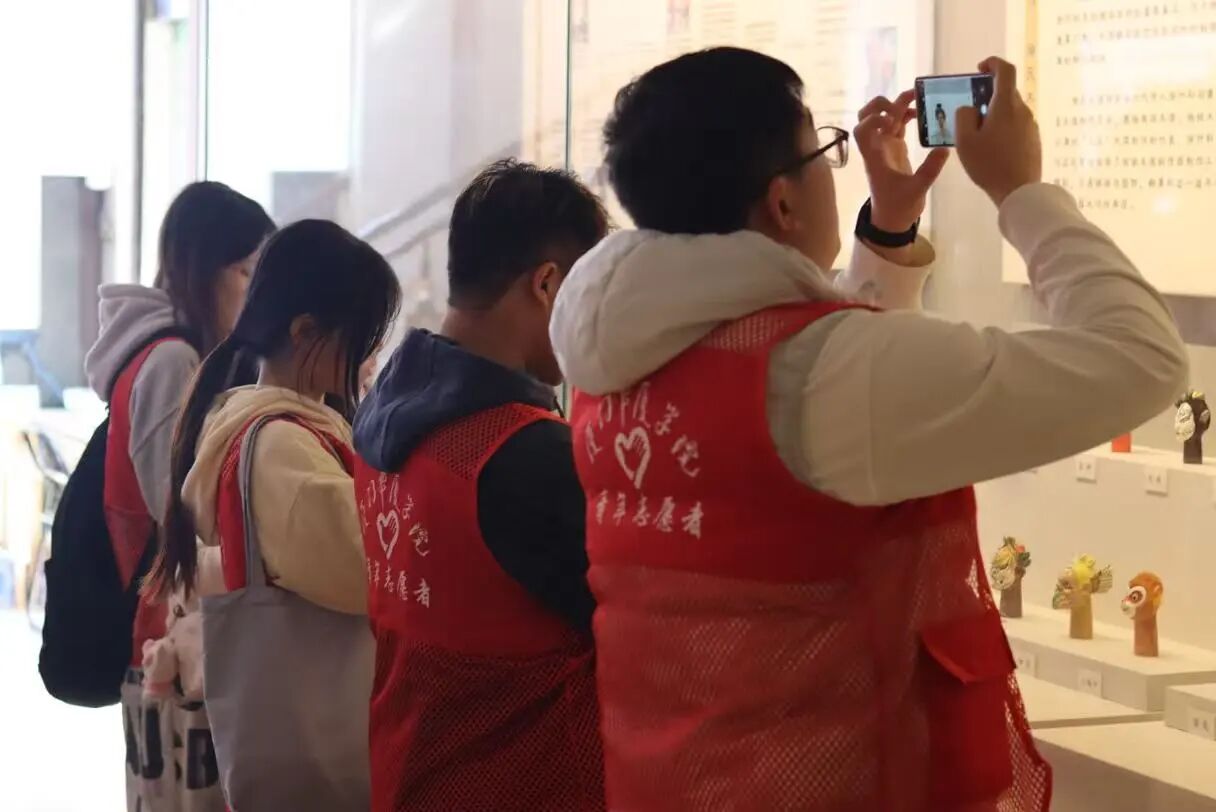 实践伊始,在徐竹初木偶艺术馆中,队员们开启了一场跨越百年的非遗溯源之旅。馆内讲解老师为大家深情讲述了徐氏木偶世家七代传承的坚守与创新:第六代传人徐竹初先生深耕木偶雕刻数十载,融汇传统戏曲与民间传说,开创“以形写神”的独特艺术风格,把木偶造型拓展至数百种,成为国家级非遗代表性传承人;其子徐强作为第七代传人,六岁随父学艺,在恪守古法精髓的基础上博采众长,以更具装饰性与视觉张力的造型创作,推动这项古老技艺在当代赓续与发展。
