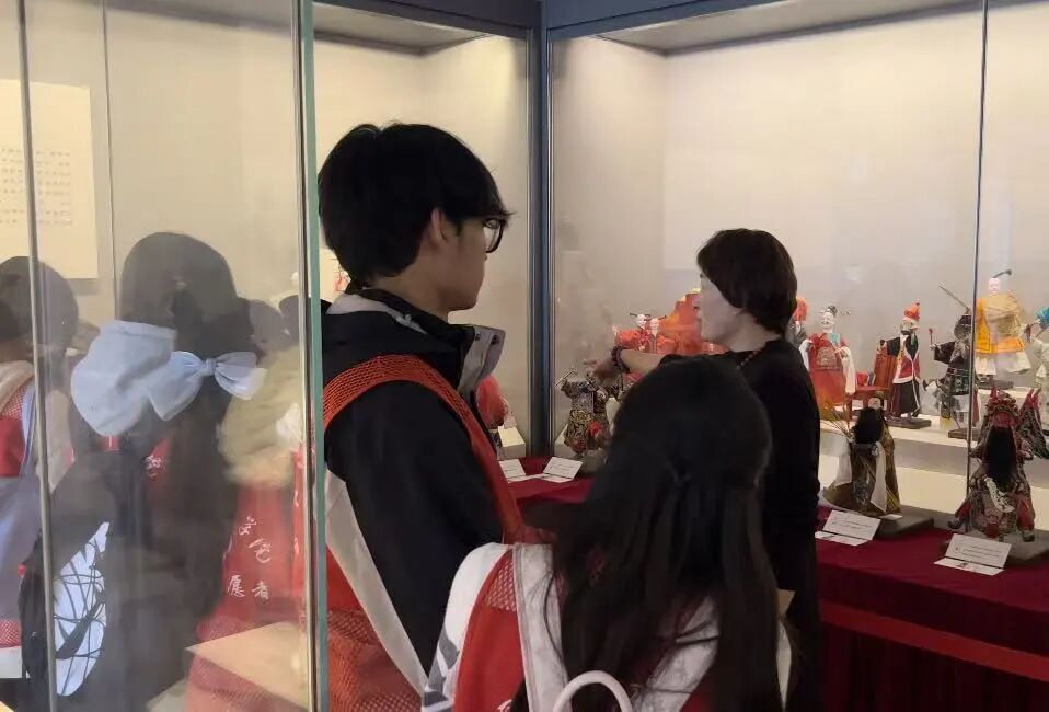 实践队跟随着馆内讲解老师的脚步,深入艺术馆,一件件精美的木偶作品陈列其间,无声诉说着指尖流转的百年文化脉搏。樟木雕刻的木偶头眉眼传神,衣饰纹样精巧繁复,面部暗藏机关,可灵活操控表情。讲解老师逐一向学子们介绍作品背后的文化渊源——从民俗信仰中的神祇形象,到传统戏曲中的生旦净丑,每一件木偶都承载着独特的故事,展现着徐氏父子“于方寸之间刻绘众生百态”的匠心。