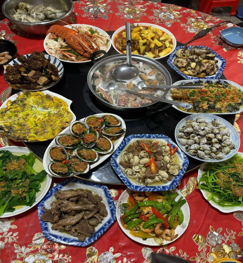 这桌满载闽南海风的年夜饭,是家乡最鲜活的味觉名片。打头阵的海蛎煎是闽南人的心头好,爆炒双脆尽显闽菜刀工精髓,晶莹剔透的土笋冻,凭自身胶原凝冻而成,蘸上蒜蓉酱油,滑嫩弹牙,藏着老闽南的古早味。龙虾、花蛤、扇贝齐聚,搭配清鲜的海鲜火锅,一桌家宴便把“靠海吃海”的福气摆得满满当当。马年新春,这桌山海家宴便是最好的期许。愿我如骏马奔腾,在专业领域里深耕不辍,在追梦路上一往无前;愿家人安康顺遂,岁岁常相见。山海有情,团圆有味,新的一年,既有奔赴远方的底气,也有回归家乡的温暖。
