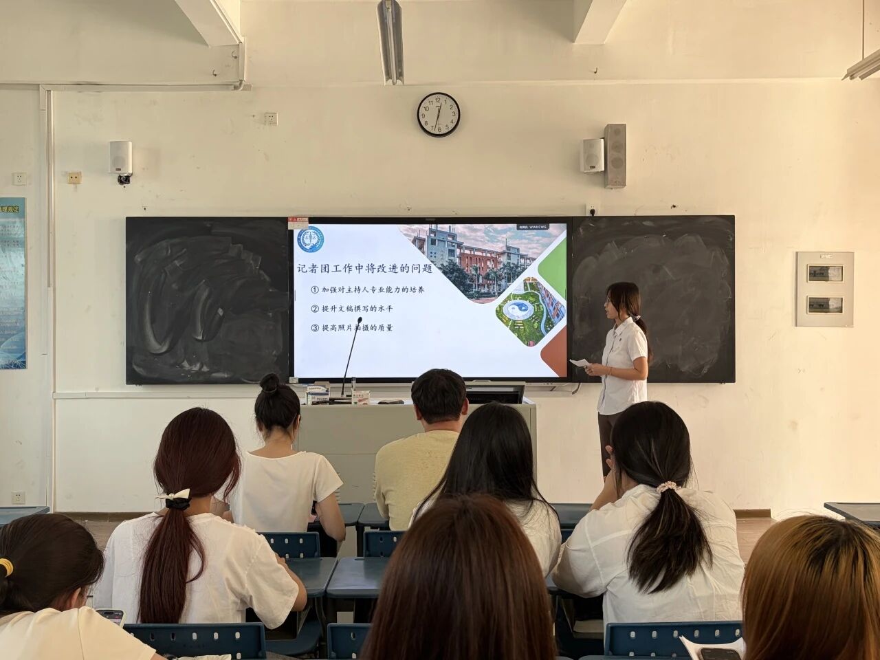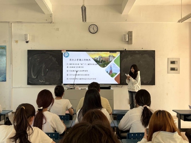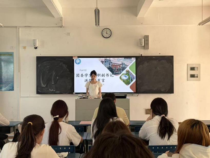 会议第二项,团委学生兼职副书记洪煜桢发言。 她围绕新学期工作思路进行梳理部署,从组织建设、校园文化建设、实践育人等方面提出具体规划,勉励全体成员凝心聚力、携手共进,以更饱满的热情、更务实的作风推动各项工作有序开展。